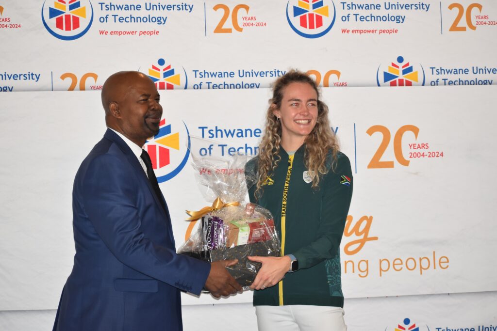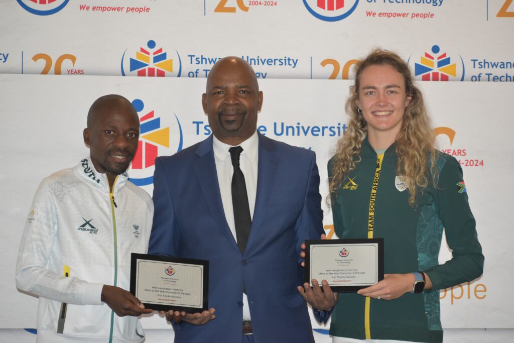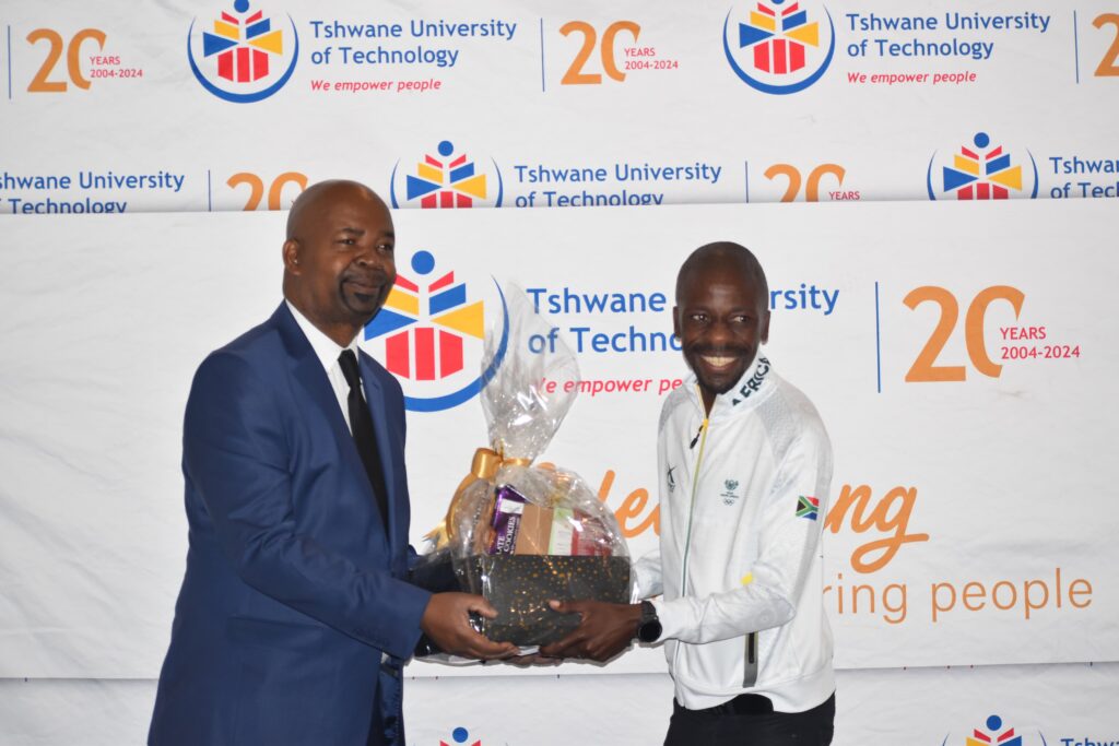 The Vice Chancellor and Principal of Tshwane University of Technology Professor Tinyiko Maluleke hosted a Welcome Breakfast at Denisburg Restaurant on Wednesday, September 18 to honour the Olympians Zeney Geldenhuys and Steven Mokoka.